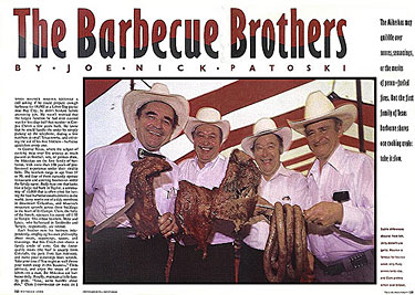 Rudy's other brothers also came into the business in the 1950's and 1960's. Mike Mikeska opened a Bar-B-Q in Smithville, Jerry opened one in Columbus, Louis in Temple, Maurice in El Campo and finally Clem in Temple. Each brother had their own style and recipe for their product. The one quality that was the same in all of the Mikeska businesses was "service." As each of the businesses grew, the brothers expanded to meet the growing necessity of their reputation. Rudy Mikeska had three barbecue stands in Taylor and the famous "L&M" restaurant in nearby Georgetown. Rudy worked 18 to 20 hours a day nourishing his customers and staff. In 1971, he combined all of his businesses into one massive restaurant and catering complex in Taylor. That complex can produce meals for over 3,000 people every hour! State-of-the-art "Roto-Flex-Smokers" that can hold 1,000 lbs of product are lined 4 abreast in his catering kitchen. Steam kettles that can hold 240 gallons of either sauce or beans round out the kitchens ability to produce immense quantities of food. Rudy designed his own glazed brick oak wood smoker that can smoke 1,000 lbs of sausage or hams. A fleet of 11 vehicles keeps the catering operation on the road every day of the week. Rudy has two large trailer Bar-B-Q pits that can cook on location anywhere in the United States. It was his ability, along with his dear brothers, that led to Texas Monthly Magazine naming the Mikeska Family...... The First Family of Texas Barbecue ![]()